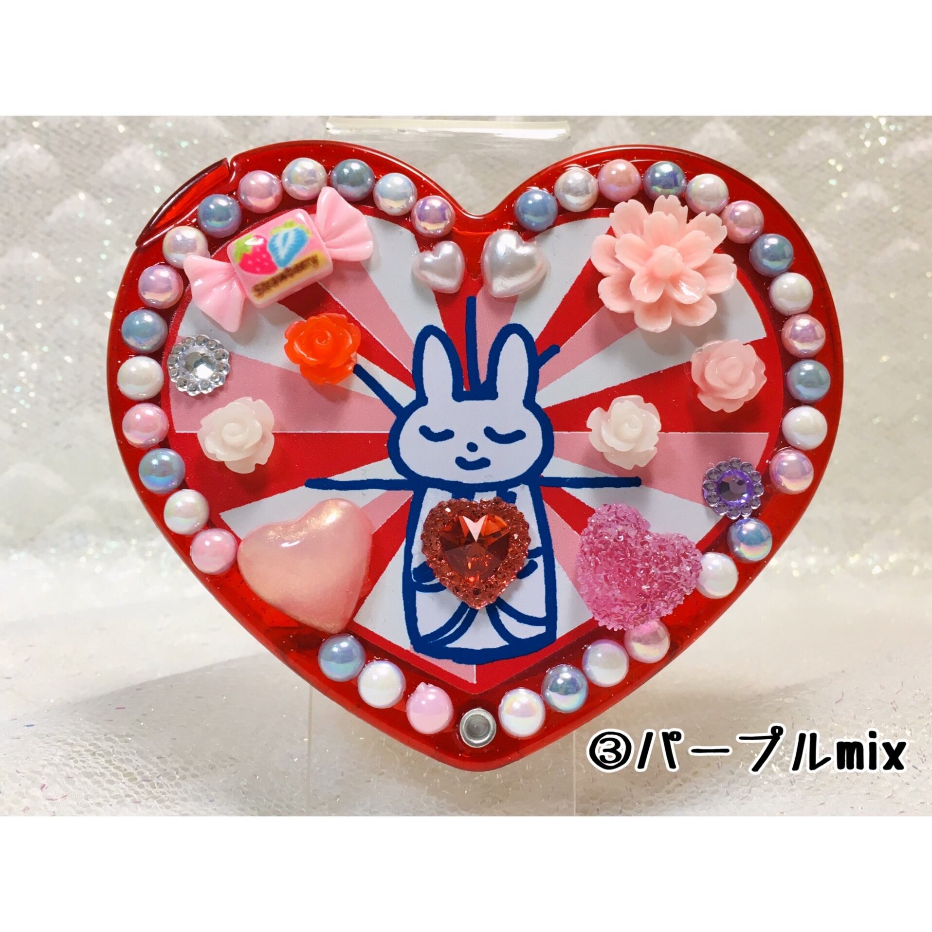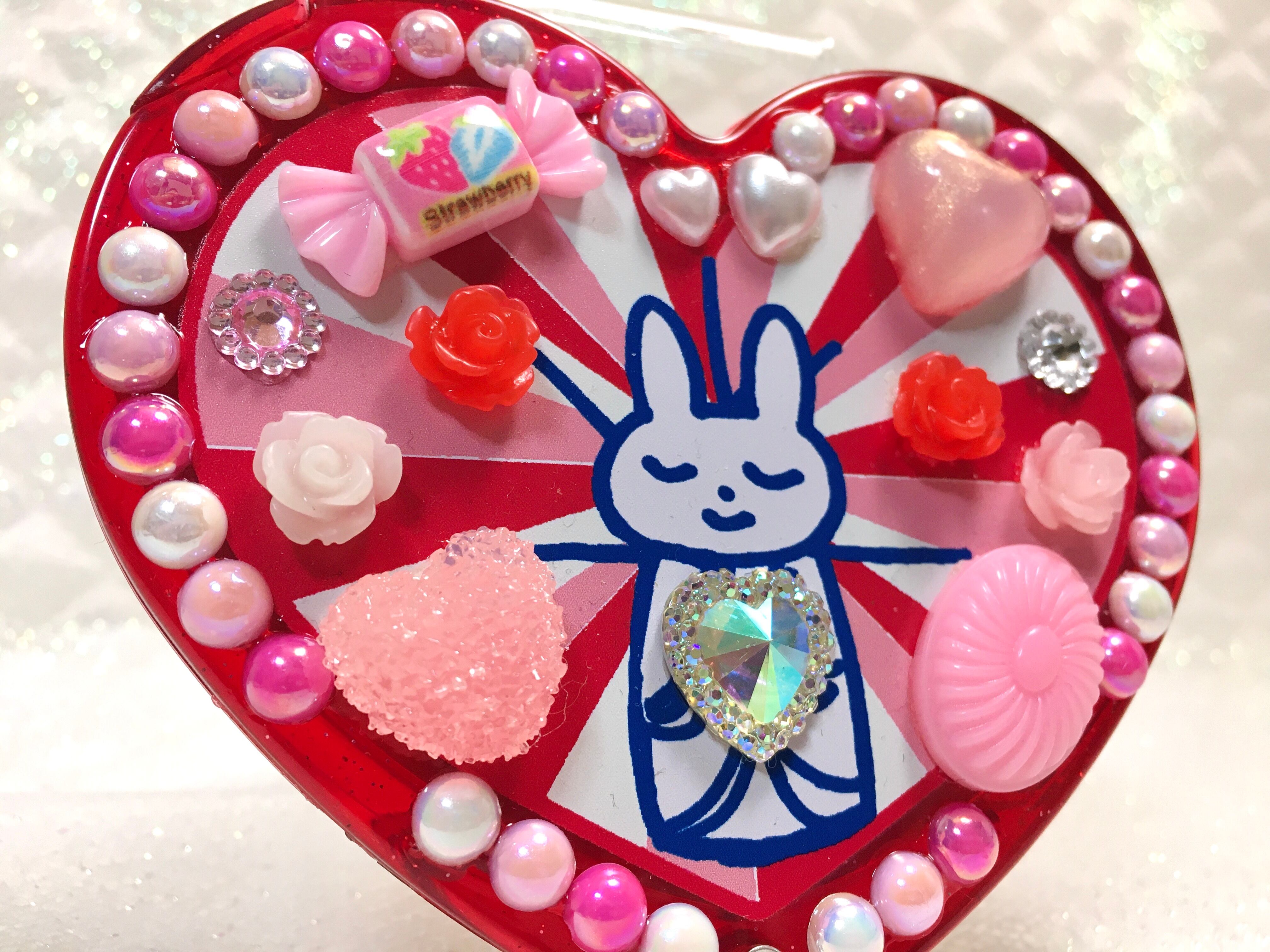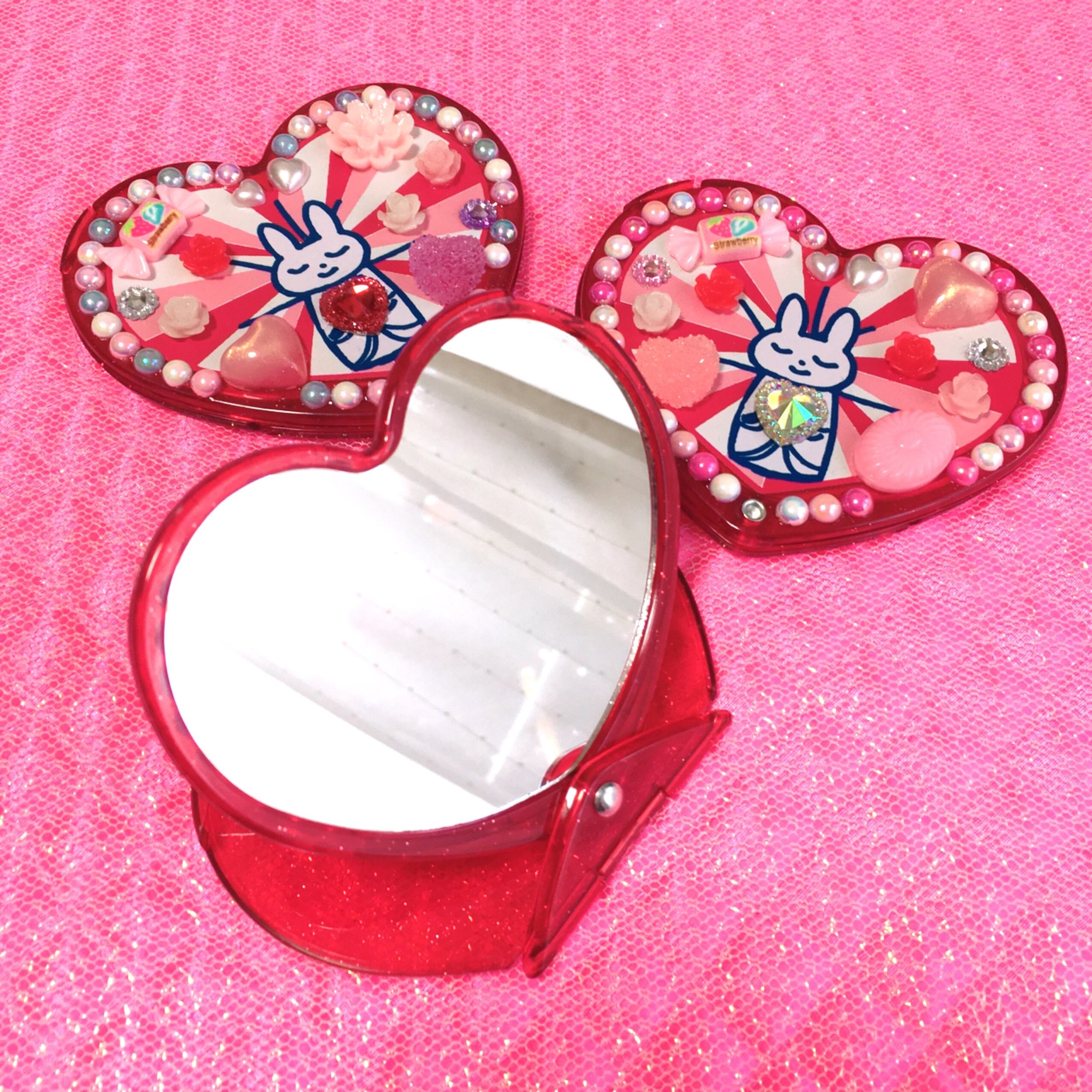 うさちゃん観音のハート型オリジナルデコミラー。飛び出すラブリーさ♡ファンシー大歓喜なデザインです。