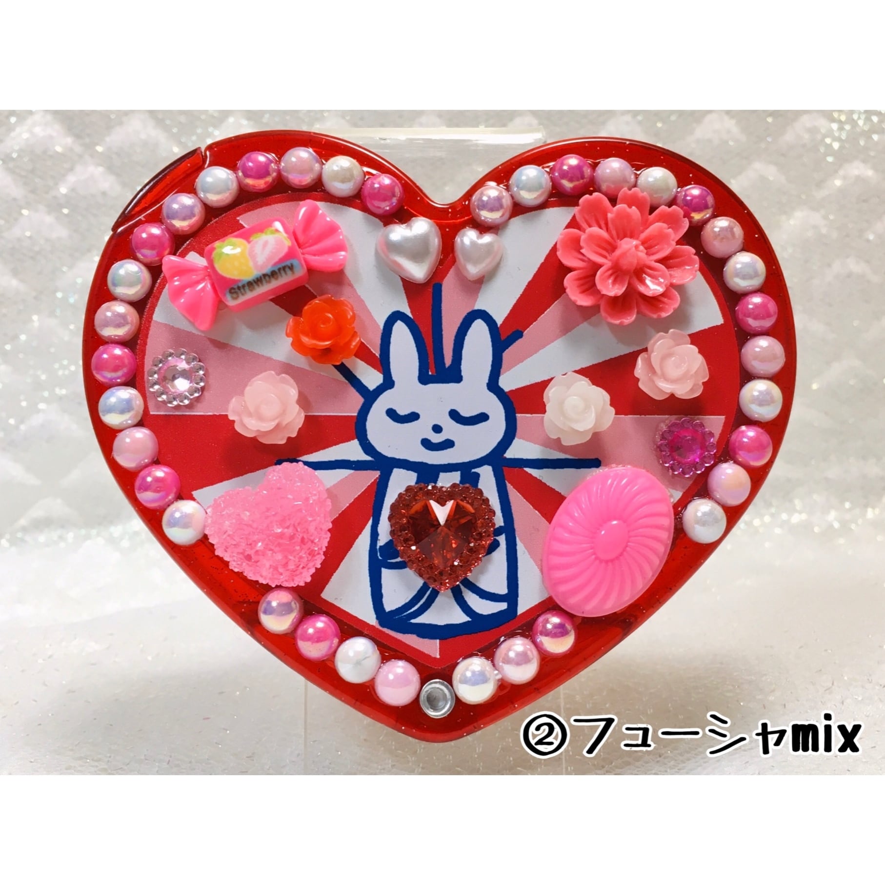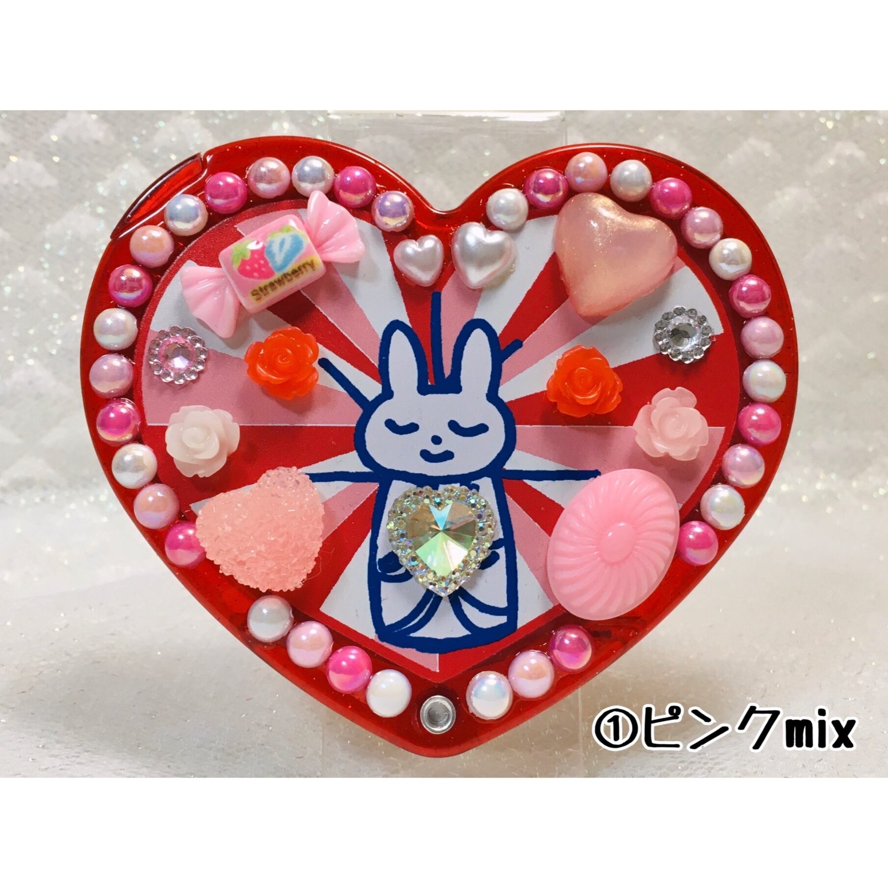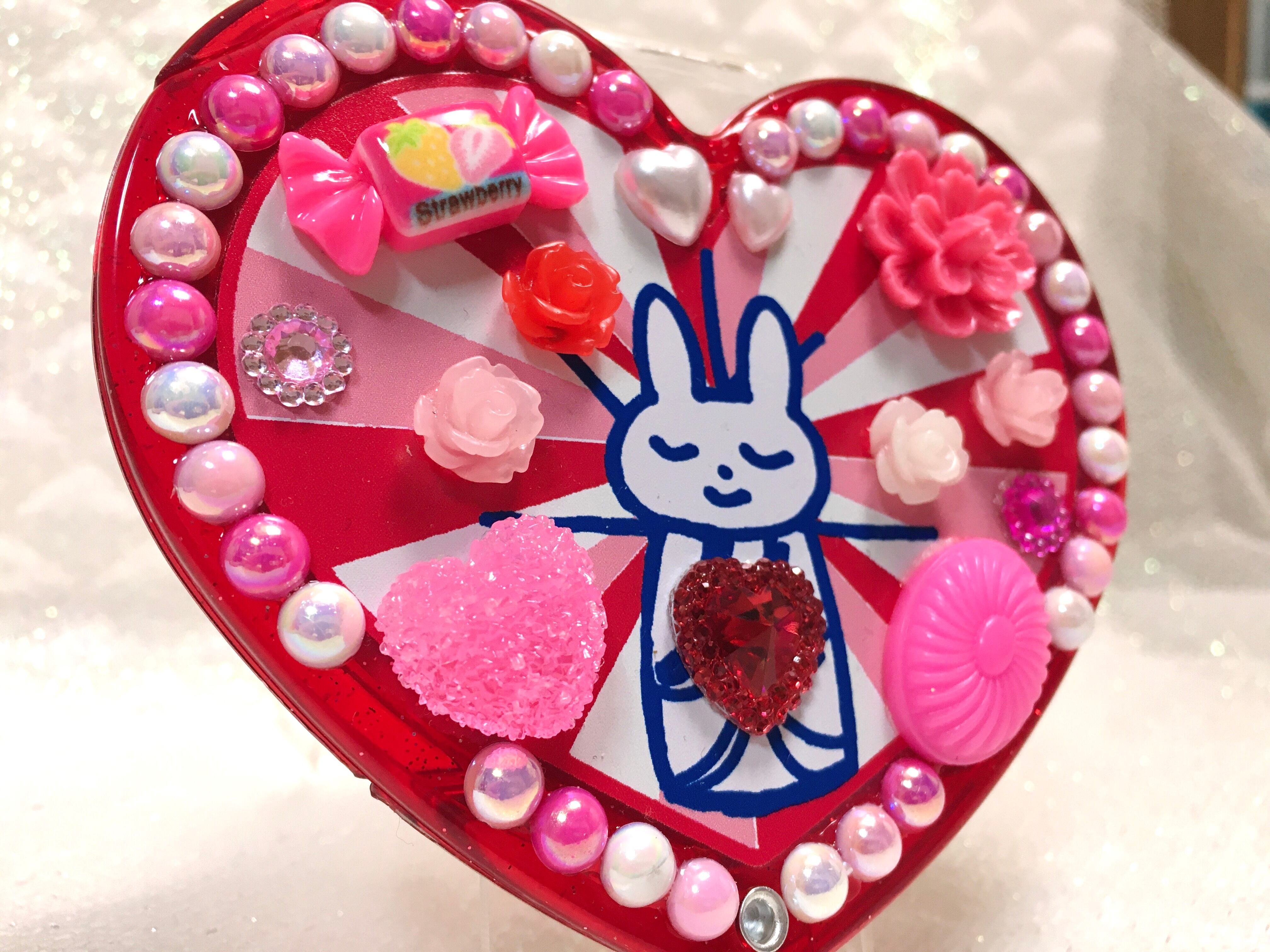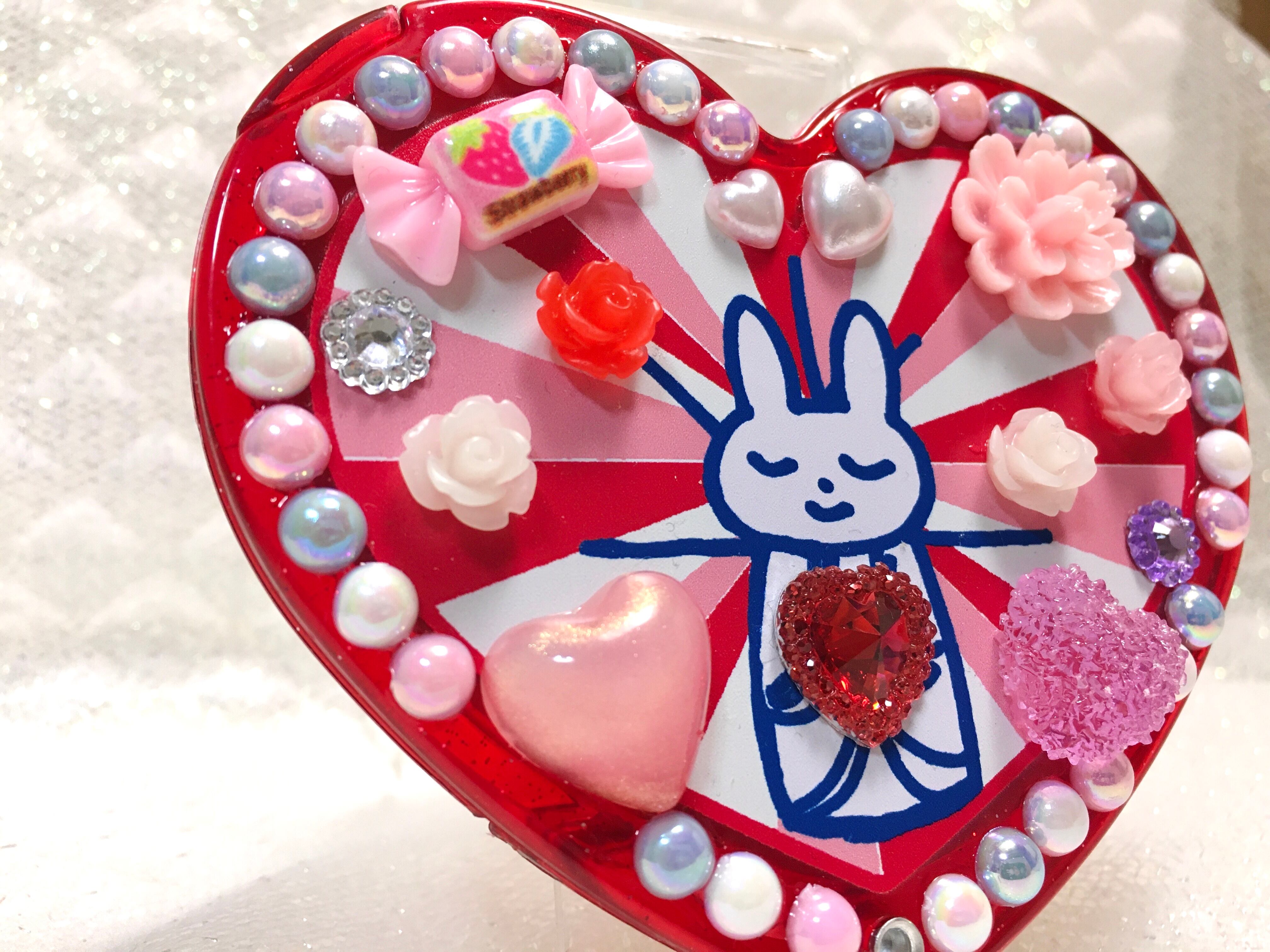 うさちゃん観音のハート型オリジナルデコミラー。飛び出すラブリーさ♡ファンシー大歓喜なデザインです。